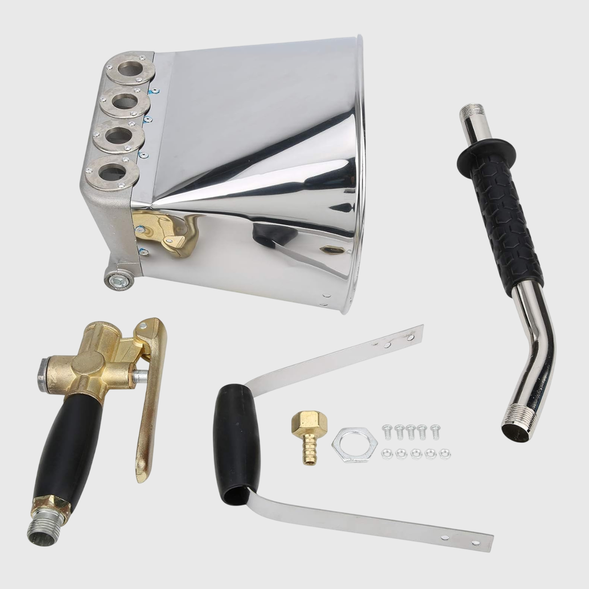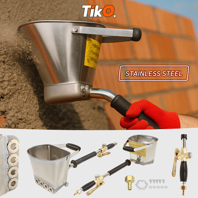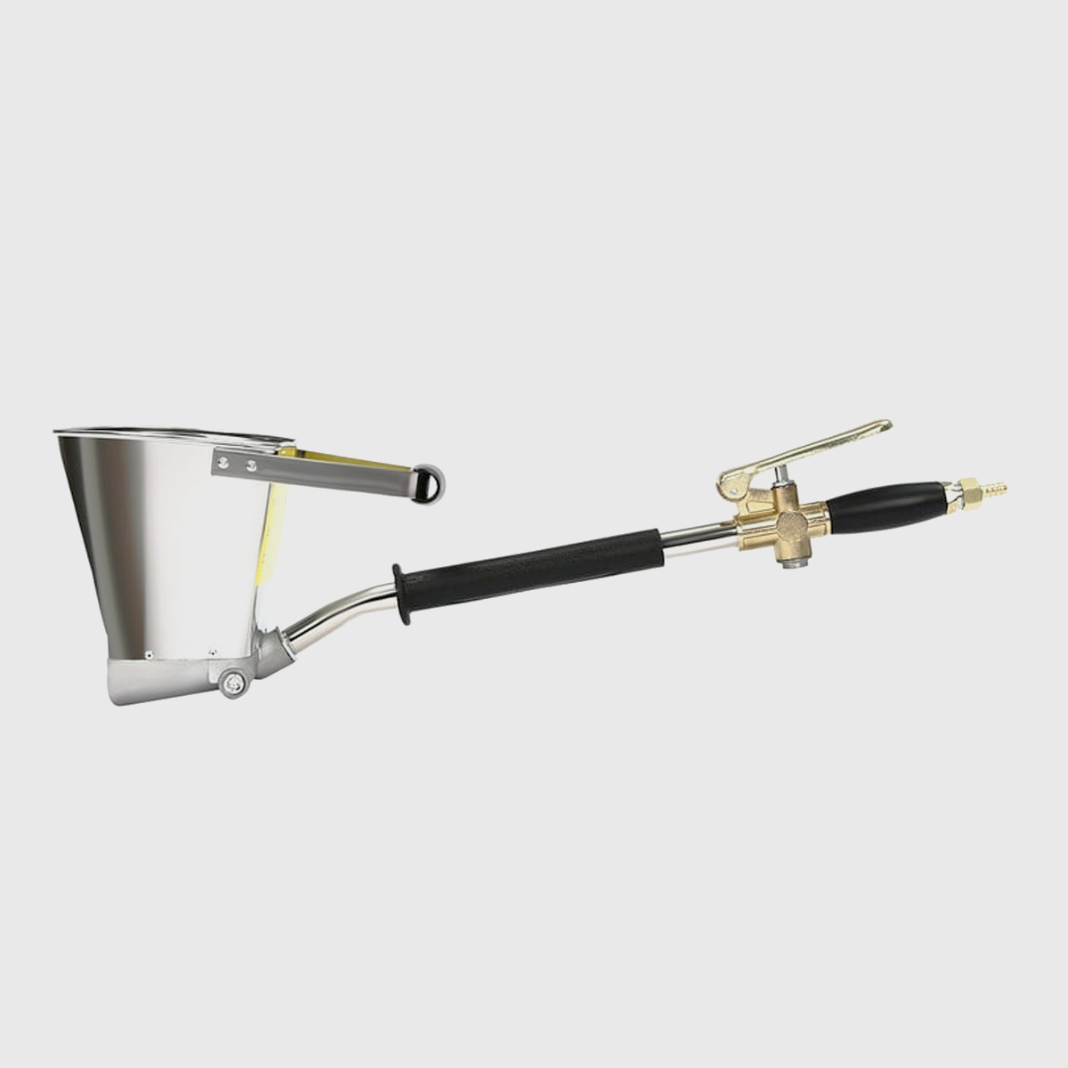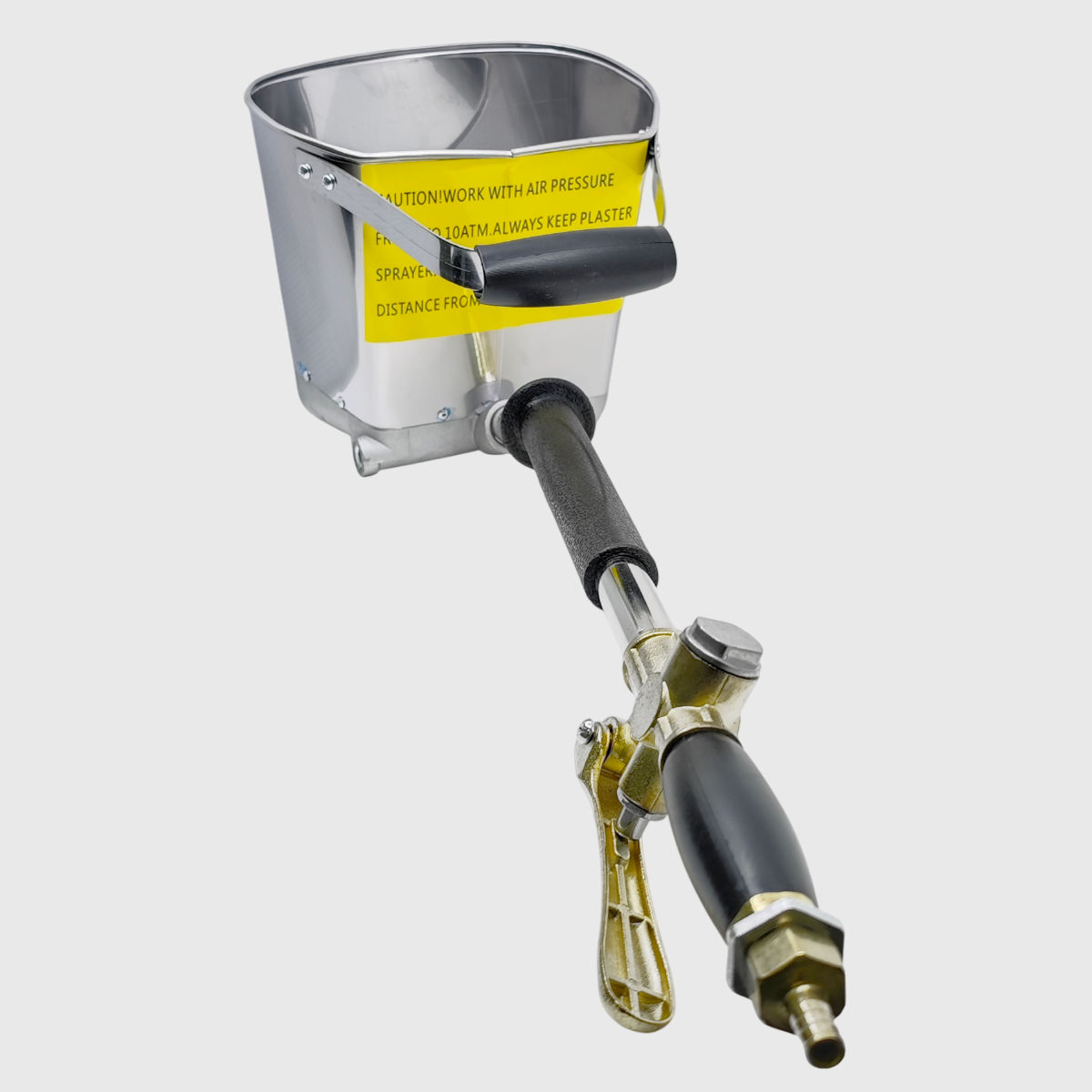 PIŠTOLJSKA PRSKALICA ZA NANOS MALTERA ️ Idealna za cementne i gipsanog maltera– Pogodna i za stropne radove Izrađena od nehrđajućeg čelika i bakra – dugotrajna i otporna na koroziju Kapacitet: 3L – jednostavna i praktična za upotrebu, omogućava uštedu materijala Ventil: 1/2" ženski utor 1/4" zračni utikač 4 dizne za prskanje – Veličina: 10 mm Preporučeni radni tlak zraka: 6-9 bara Težina: 3 kg ⚖️ Dužina: 70 cm