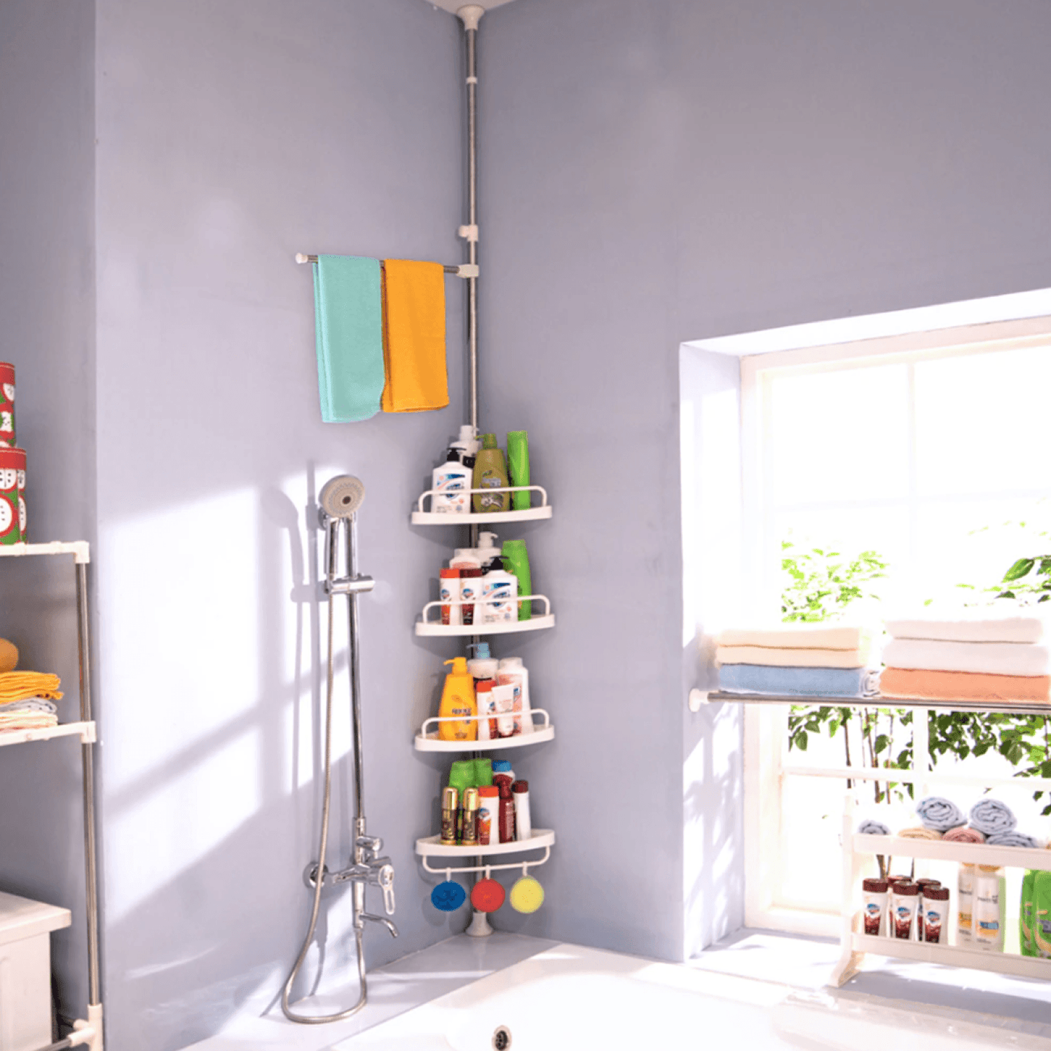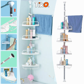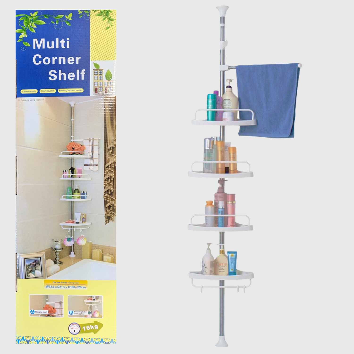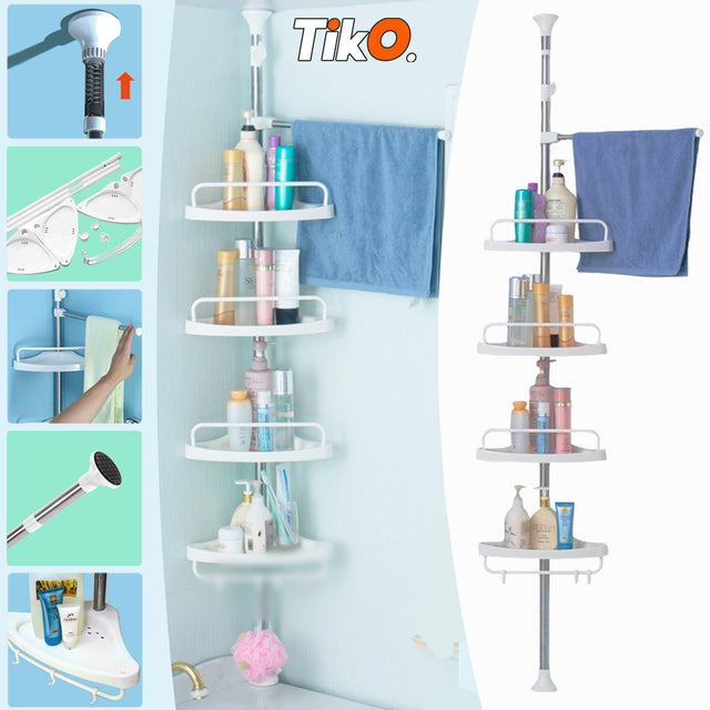 TELESKOPSKA UGAONA POLICA - Teleskopski štap koji se montira u ugao kupaonice, kade ili tuš kabine. Poseduje 4 plastične police za odlaganje stvari. Ovaj proizvod obezbeđuje uštedu prostora i dodatni prostor za odlaganje stvari tokom tuširanja (gelovi, šamponi, sunđeri, kreme). Veoma jednostavan za montažu i praktičan za upotrebu. VIDEO UPUTSTVA ZA MONTAŽU: https://youtu.be/vTs0io9-aWs
