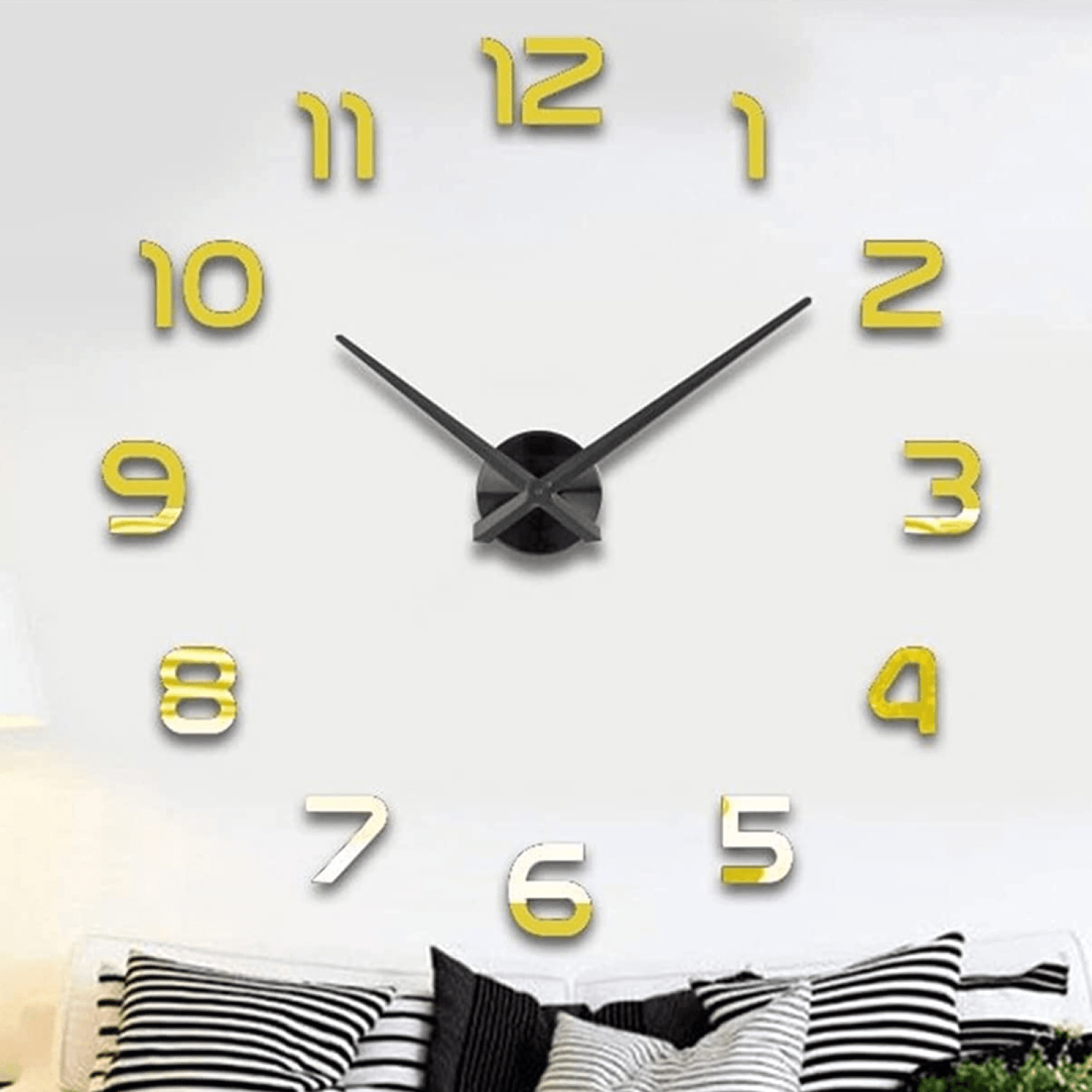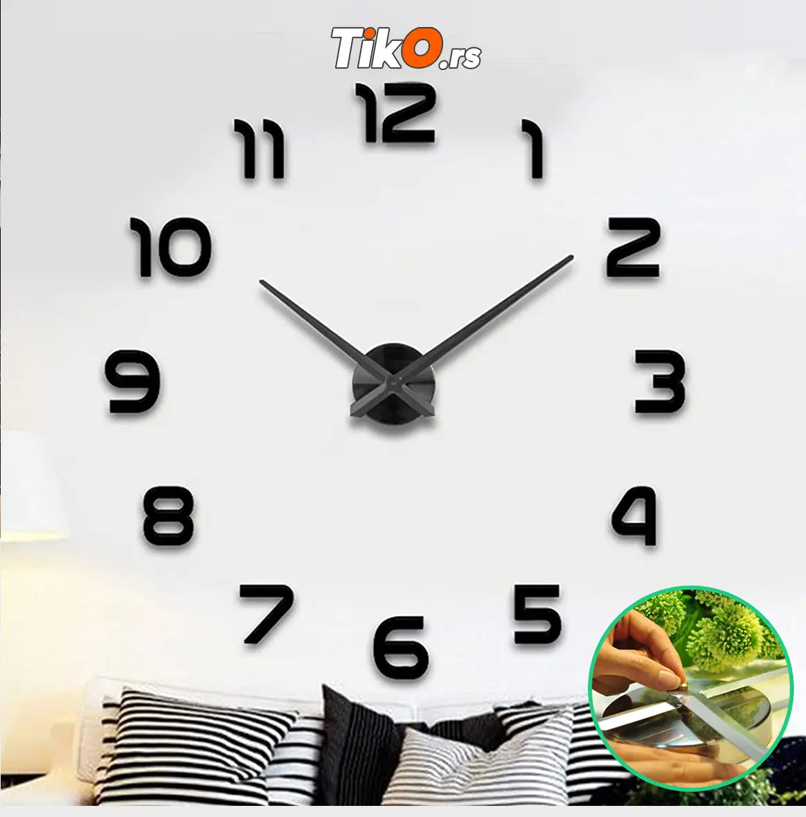 - GIGANTSKI 3D zidni sat - - Dekorativni 3D zidni sat će elegantno i sa stilom ukrasiti vaš dom. - Postavlja se po principu "uradi sam" jer brojeve oko satnog mehanizma postavljate sami. - Brojevi se lepe na zid pomoću samolepljive trake koja se već nalazi na poleđini. - Ovaj sat nije samo pokazatelj vremena, već i idealan ukras. Dimenzije brojeva: 6 cm Prečnik centralnog mehanizma: 12 cm Prečnik sata na zidu oko 1,2 metra Debljina brojeva je oko 0,7 cm Dostupne boje: zlatna, srebrna i crna