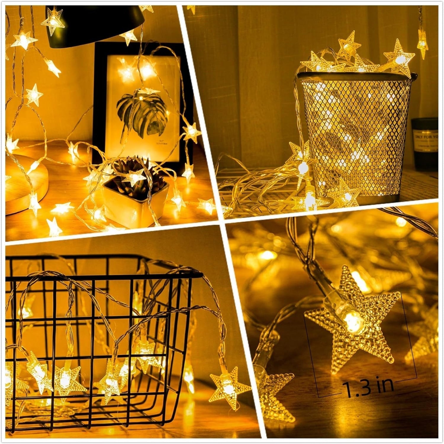 • LED LAMPICE ZVEZDE Ovaj divni proizvod će ulepšati svaki dom Boja: toplo bela Dekor koji pruža nezaboravnu atmosferu tokom praznika Namenjen za unutrašnje prostore, unutrašnje terase i za ukrašavanje drveta LED tehnologija obezbeđuje nisku potrošnju energiju i dug radni vek 8 režima rada Mogućnost povezivanja više lampi odjednom Dužina: 4 m Dužina dekoracije: 55-65cm 10 zvezdica 5 zvezdica + 5 pahuljica