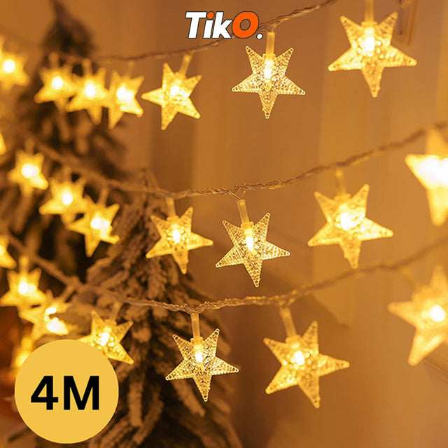 • Boja:toplo bela Dekor koji pruža nezaboravnu atmosferu tokom praznika Namenjen za unutrašnje prostore, unutrašnje terase i za ukrašavanje drveta LED tehnologija obezbeđuje nisku potrošnju energiju i dug radni vek 8 režima rada Mogućnost povezivanja više lampi odjednom Dužina: 4 m Dužina dekoracije: 55-65cm 10 zvezdica 5 zvezdica + 5 pahuljica