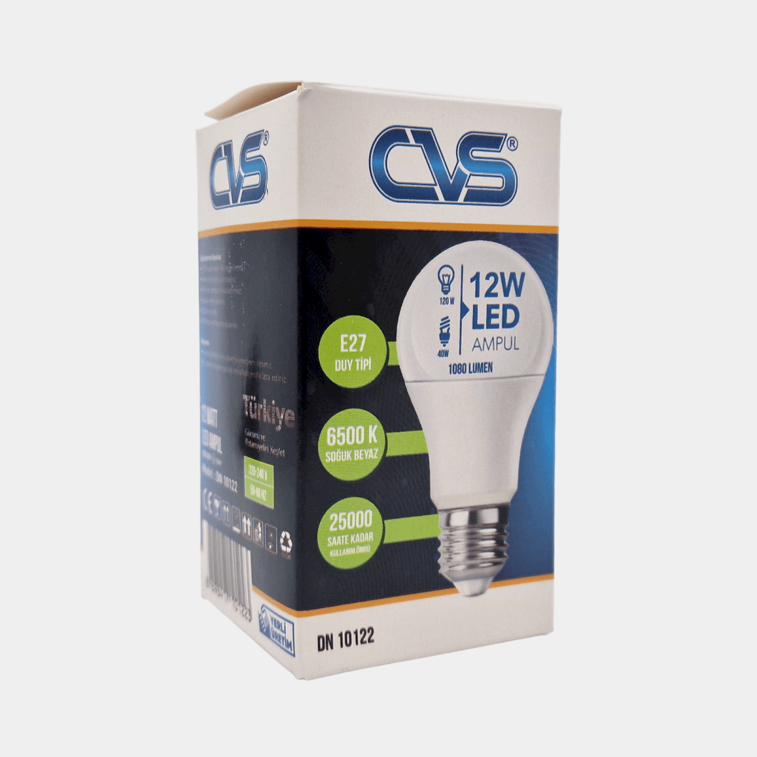 • PROIZVEDENO U TURSKOJ - SVE POTREBNE SERTIFIKATE ZA EU TRŽIŠTE Izrađeno u skladu sa najnovijim standardima LED tehnologije SMD čip TEHNIČKE SPECIFIKACIJE: Snaga: 12W Boja: 6500K, hladno bela svetlost Grlo: E27 Radni vek: 25 000h Ušteda do 85% energije