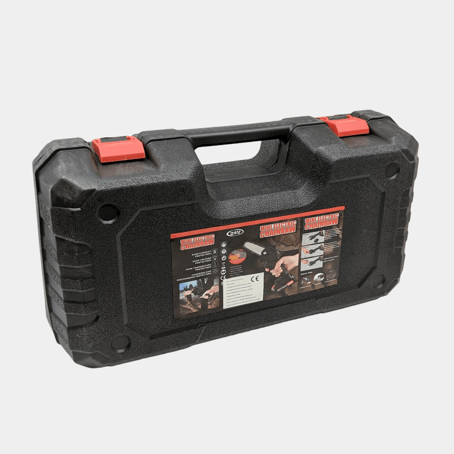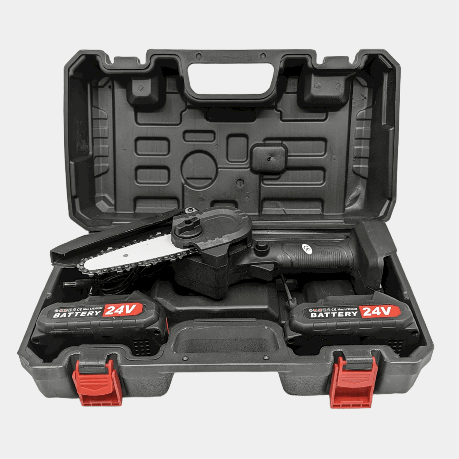 Akumulatorska motorna testera 24V sa dve baterije i punjačem u praktičnom koferu Najprodavaniji proizvod na internetu u poslednjih nekoliko godina Dostupna 3 modela 4 inch/10 cm- 6 inch/15 cm- 8 inch/20cm- Vodilica dužine 10, 15, 20 cm 2 x baterije 24V Ergonomska drška Napajanje 24V Punjač za baterije Brzina lanca 5m/s Materijal: ABS + metal Litijum-jonska baterija Težina paketa: 2,8 kg Kapacitet baterije: 2,0Ah