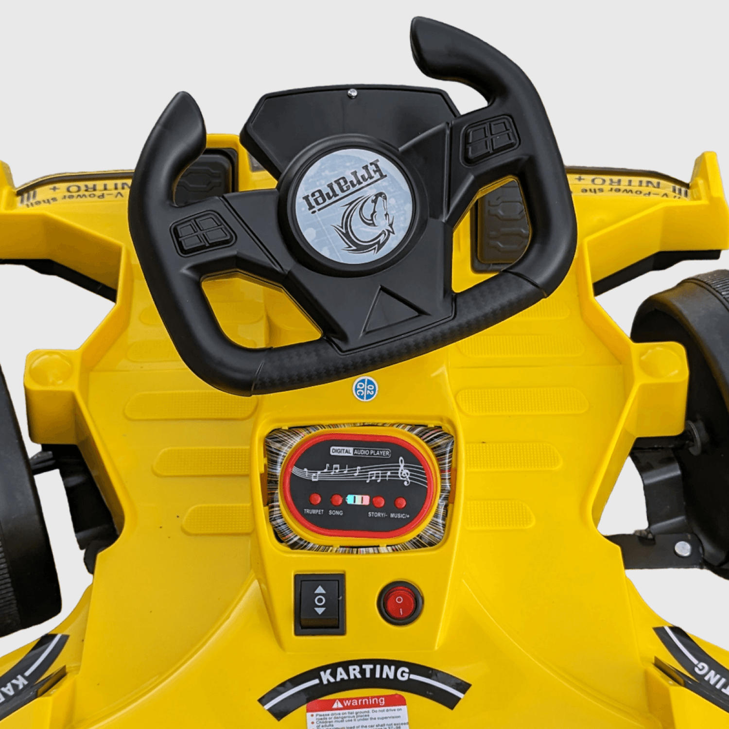 - Dostupne boje: crvena i žuta TEHNIČKE SPECIFIKACIJE: ☑ Napon baterije: 7.5V ☑ Brzo punjenje putem 220V adaptera ☑ Sirena + 6 dostupnih muzičkih melodija ☑ Dimenzije: 90 x 50 x 40 cm ☑ Za decu uzrasta od 2-5 godina ☑ Nosivost do 30 kg