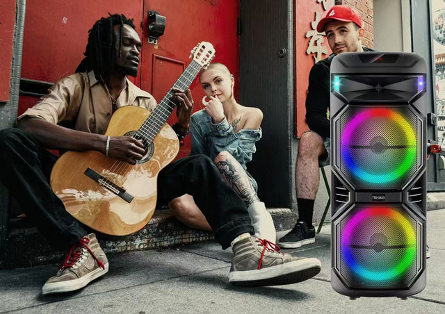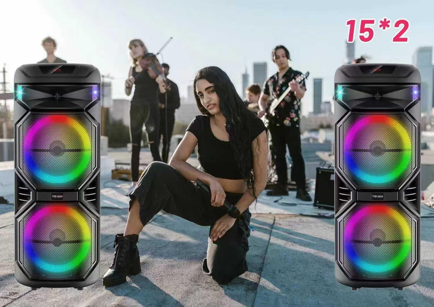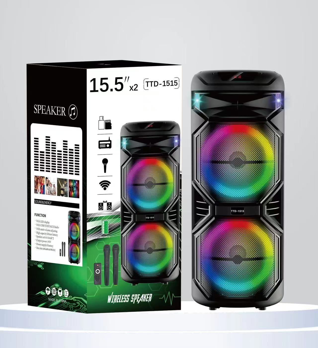 - 🥳 Specifikacije: 2x 15,5” bas jedinice za snažan i jasan zvuk Snaga: 50W Baterija: 4500 mAh – dugo trajanje bez prekida Dimenzije: 110 x 40 x 40 cm Podrška za: TF karticu / FM radio / Bluetooth / TWS / HiFi / AUX / USB / MP3 U kompletu dobijate: 2 bežična mikrofona – za karaoke i nastupe Daljinski upravljač ️ Punjač za bateriju ⚡ Dodatne pogodnosti: LED RGB osvetljenje koje menja boje u ritmu muzike TWS funkcija – mogućnost povezivanja dva zvučnika za stereo efekat ️ Idealno za zabave, okupljanja, karaoke i proslave