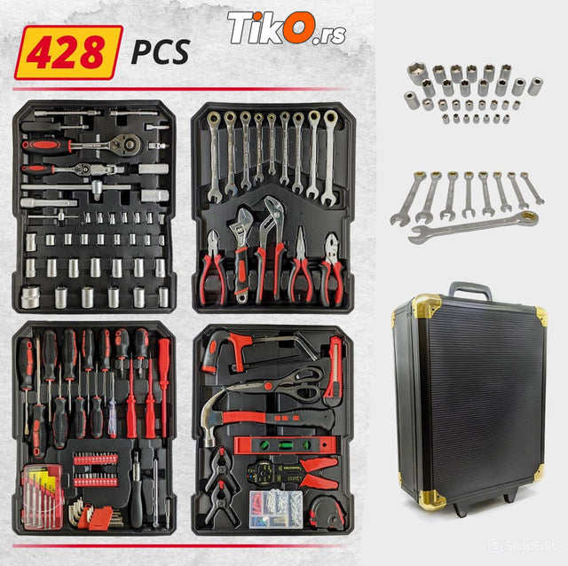 - Hanson 428-delni kofer alata + gratis rukavice BUDI I TI PRAVI MAJSTOR sa našim 428-delnim setom alata Hrom-Vanadium kaljeno Sadržaj kovčega Vam omogućava rad gotovo u svim poljima.