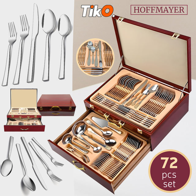 - - Set se sastoji od: 12 viljuški 12 kašika za supu 12 noževa 12 desertnih kašika 12 desertnih viljuški Šeflji za supu Raznih kuhinjskih pomagala u 72 delova.